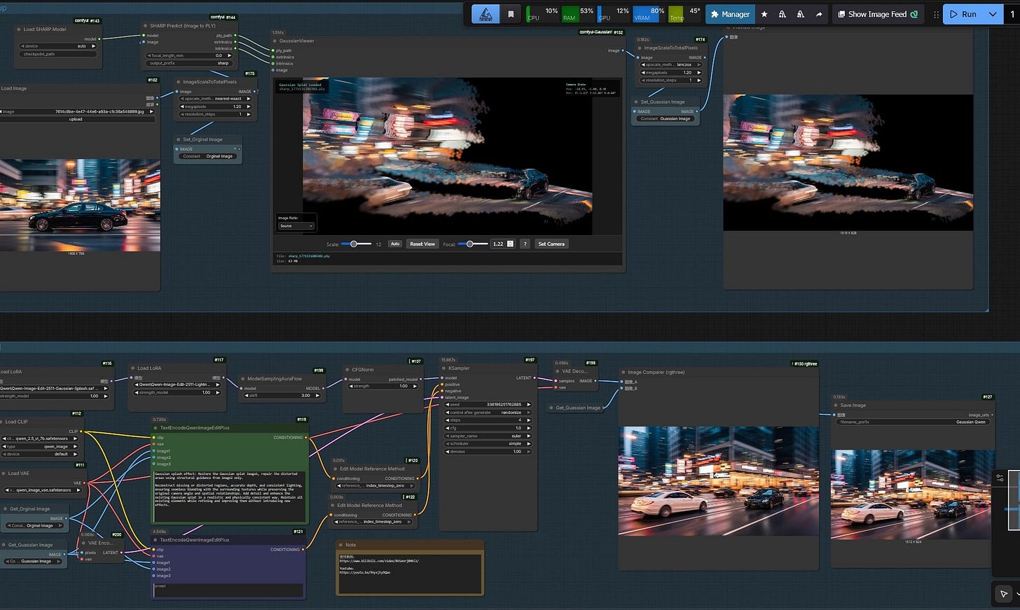 🔸 ComfyUI : Workflow local Gaussian Splats + Qwen Edit (Matthew Hallett)